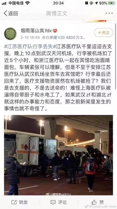 但是在一片团结的氛围中,总是有不和谐的声音出现。在江苏医疗队到达武汉之后,医疗队的行李意外丢失(据说是被抢),甚至被安排坐厢式货车去宾馆。虽说武汉物资紧张,但也没有紧张到这个程度吧。发生这种事情,也难怪上海医疗队自带厨子和水电工了。武汉的“骚操作”还有一例,2月10日,武汉宣布所有住宅小区实行封闭管理。非疫区的省份和城市都已经实行住宅小区封闭管理多日了,敢情您武汉头号疫区才刚开始呢?真是别的兄弟已经跑出去几百米远了,武汉才刚刚找到鞋穿。