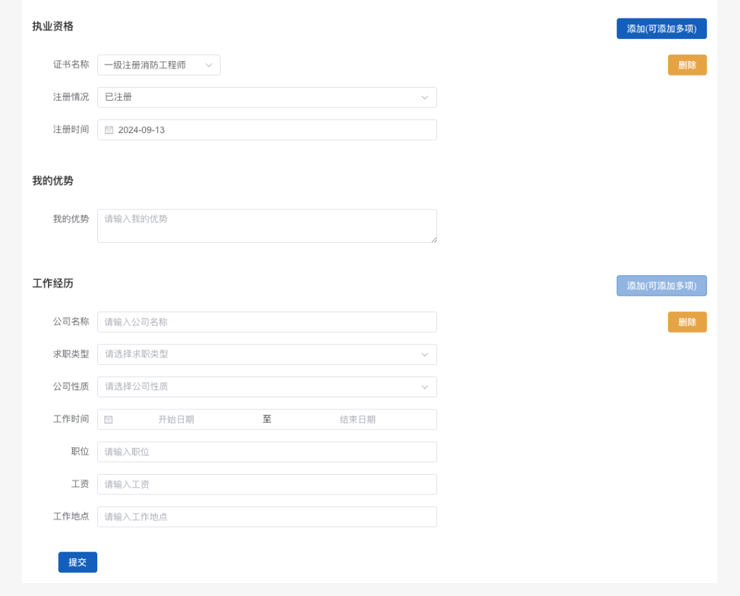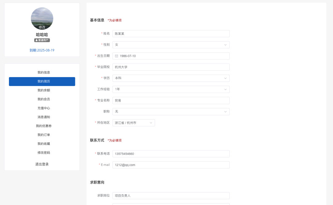2、 PC端会员中心增加简历管理;
