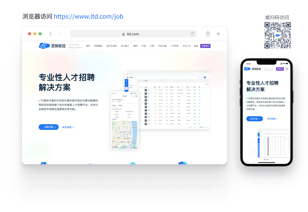 可以直接访问 ltd.com/job 或扫下图中的二维码来了解求职招聘应用的全部内容。