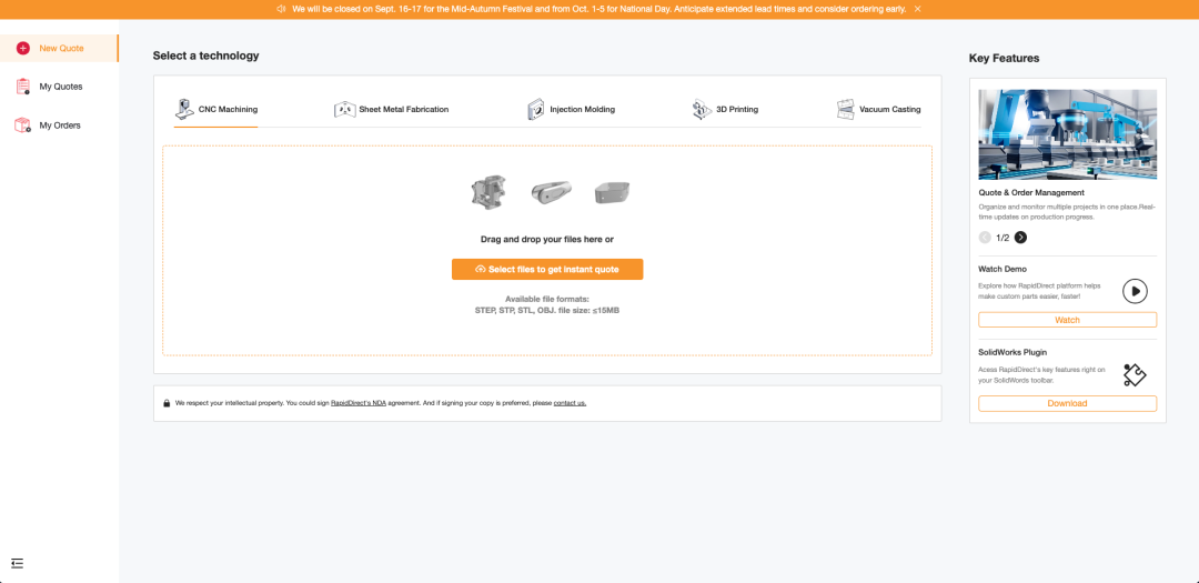 该网站的业务场景为提供3D打印服务,用户通过上传需要打印的3D模型,网站通过获取模型的体积、表面积、材料等参数,自动计算出所需的报价,并批量下单支付。