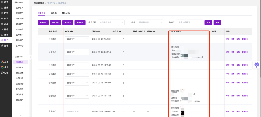 1) 优化会员注册自定义字段设置