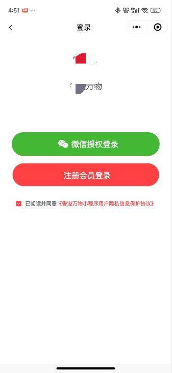 开启手机号登录即注册之后,微信小程序中「会员注册」的位置将显示注册会员登录,用户通过手机号+短信验证码进行登录,如果注册过会员,将自动注册。