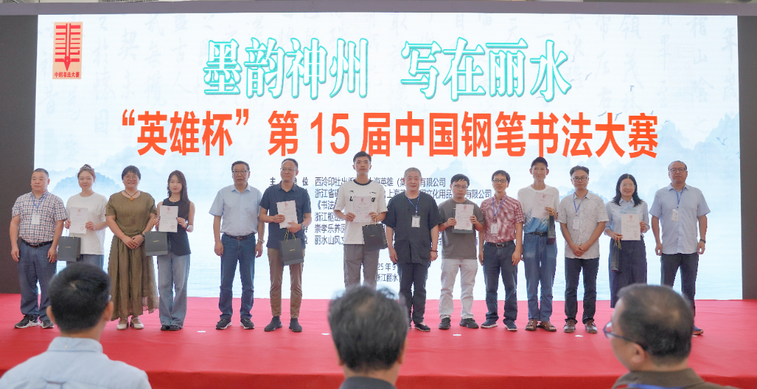 在热烈的掌声中,评委和嘉宾们为获奖选手颁发荣誉证书与英雄金笔定制奖品——这支凝聚着匠心的钢笔,不仅是对选手实力的认可,更承载着,传承笔墨精神、续写文化新篇的期许。
