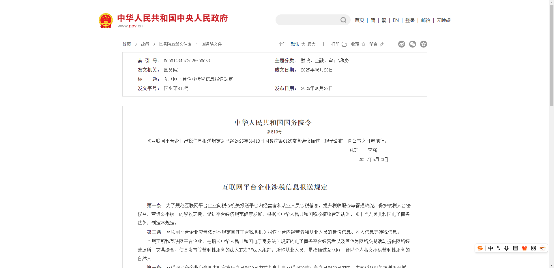 10月起实施的《互联网平台企业涉税信息报送规定》正在彻底改变电商行业的税务生态。该规定要求所有主流互联网平台,包括亚马逊、抖音、淘宝等按季度向税务机关报送平台内经营者的身份、交易金额等详细信息。
