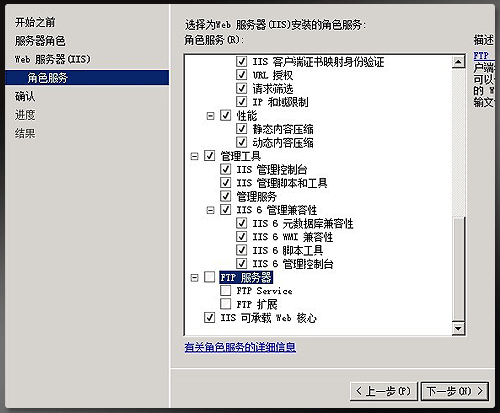 角色服务,勾选除“FTP服务器”以为所有服务,如下图所示: