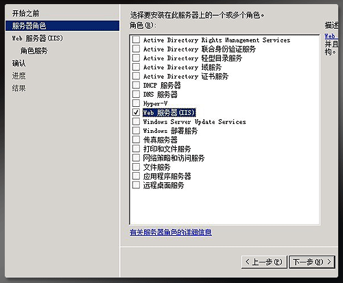 点击角色->添加角色,选择“web服务器(IIS)”,如图所示:
