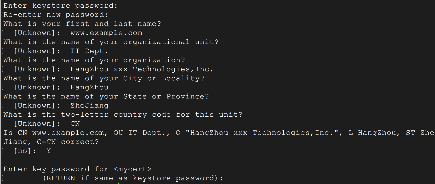 | What is your first and last name? | 申请证书的域名 | www.example.com |