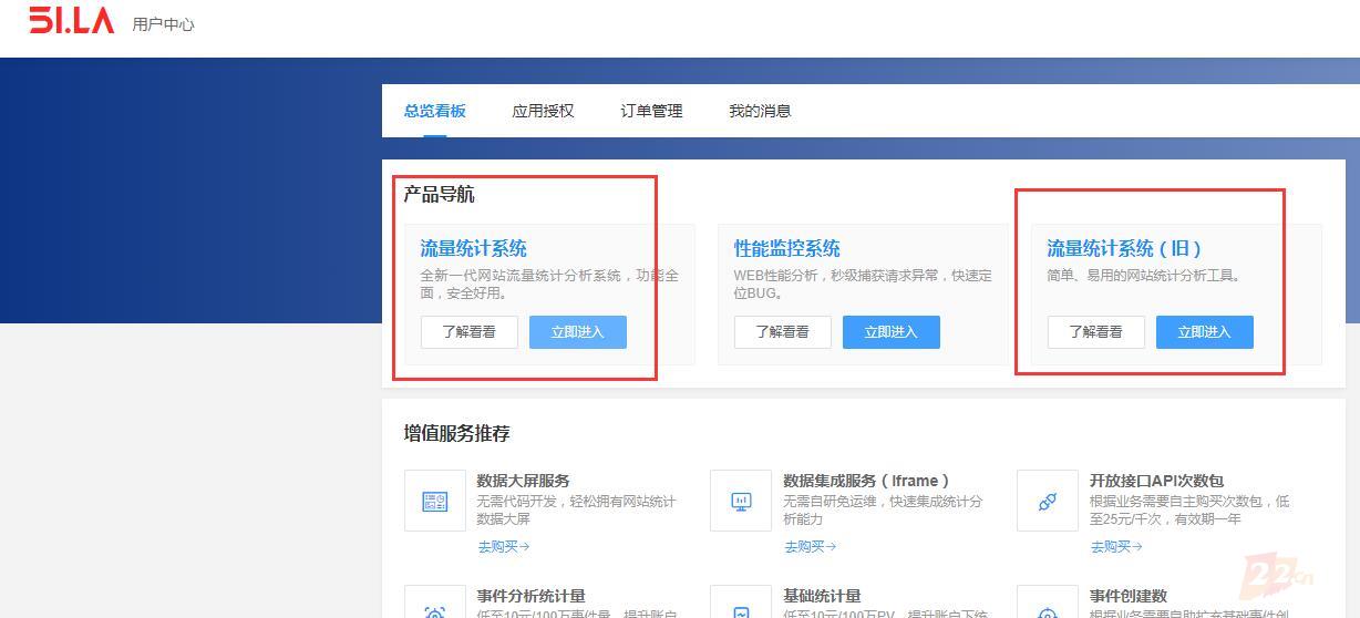 由于51la近期改版过,出现了2种不同形式的统计代码。一种是就“流量统计系统(旧)”,另一种是“流量统计系统”,以下简称旧版统计和新版统计。不管哪种统计,只要获取到了正确的统计ID,添加到爱名网出售页模板的51la统计ID里面,就能生效。