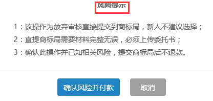 ”,是指直接将商标提交至商标局审核,我公司不会进行审核,速度快,无需等待,建议比较有把握的用户选择该方式;