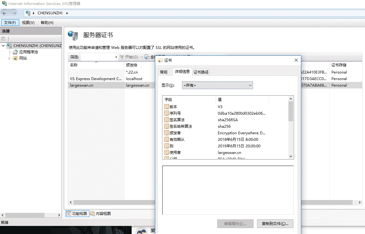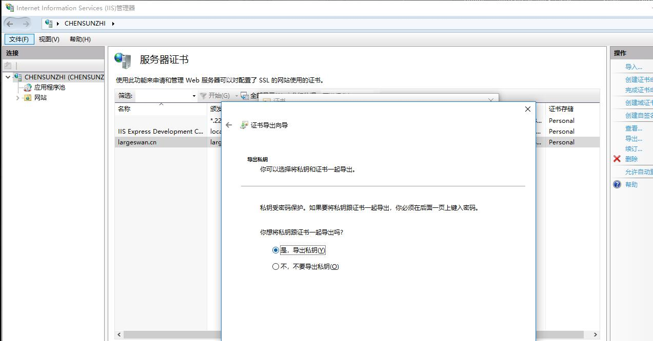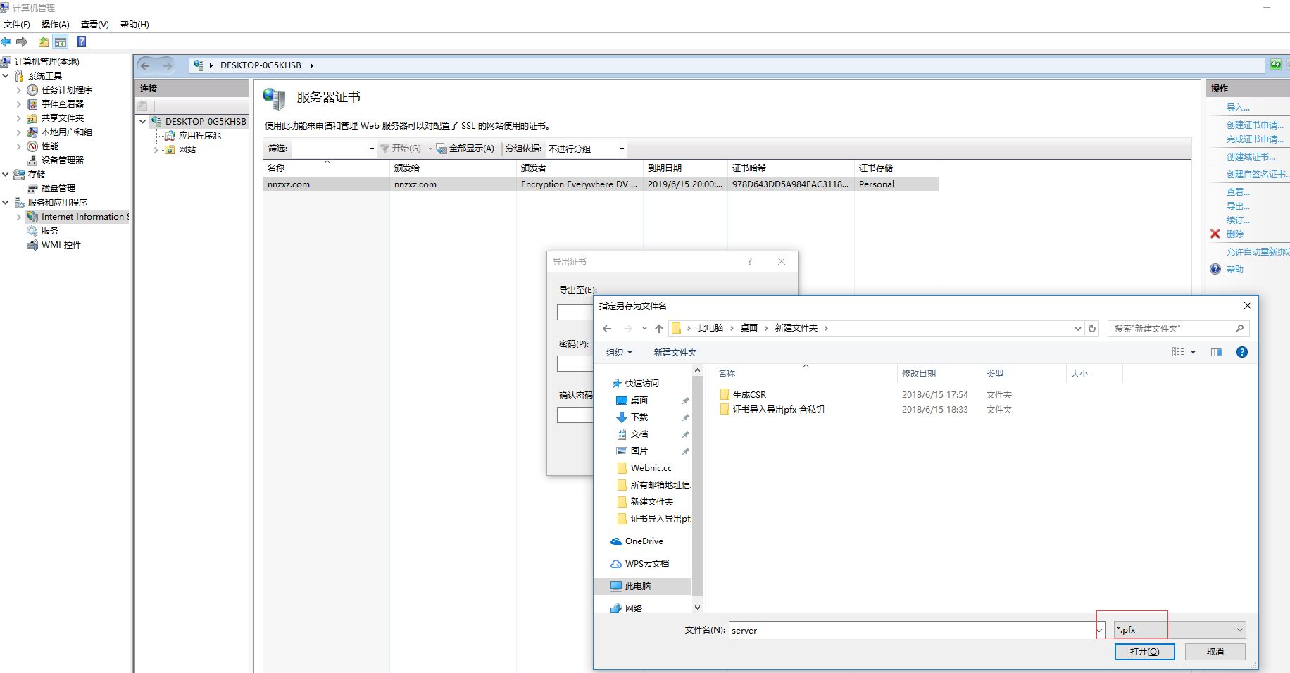 IIS 服务器证书创建与配置以及如何导出pfx格式的证书提取key私钥?
