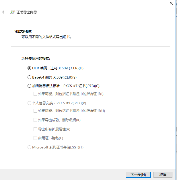 最后选择你要的格式点击“下一步”就可以导出证书信息了。