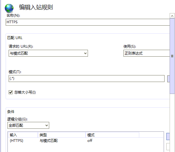 <add input="{HTTPS}" pattern="off" ignoreCase="true" />