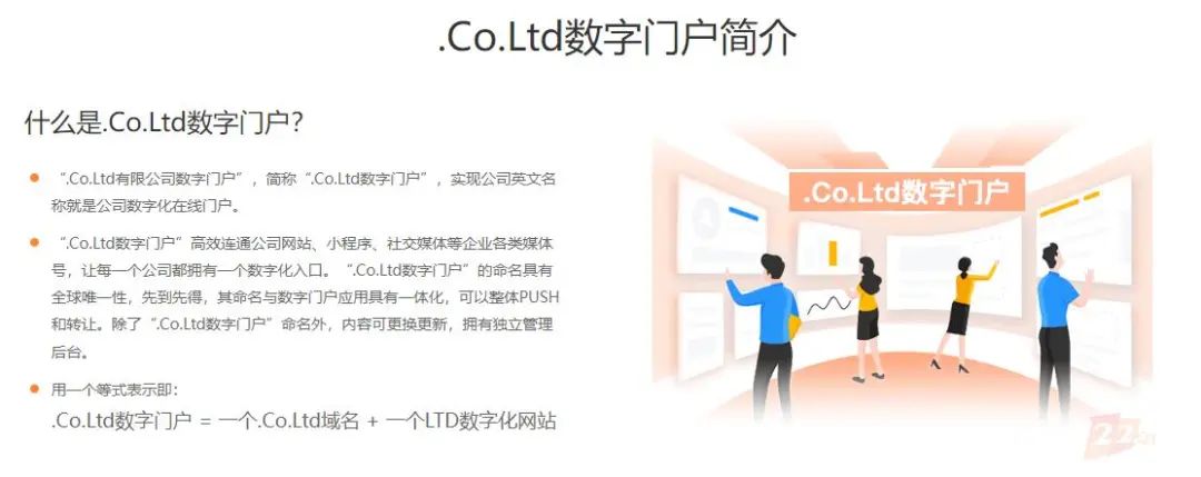 用一个等式表示即:.Co.Ltd数字门户 = 一个.Co.Ltd域名 + 一个LTD数字化网站