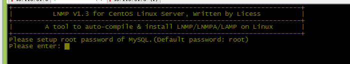 需要设置MySQL的root密码(不输入直接回车将会设置为root)如果输入有错误需要删除时,可以按住Ctrl再按Backspace键进行删除。输入后回车进入下一步,如下图所示: