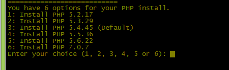 输入对应MySQL或MariaDB版本前面的序号,回车进入下一步,选择PHP版本: