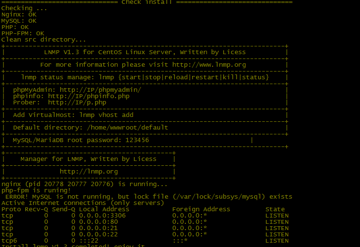 LNMP脚本就会自动安装编译Nginx、MySQL、PHP、phpMyAdmin、Zend Optimizer这几个软件。