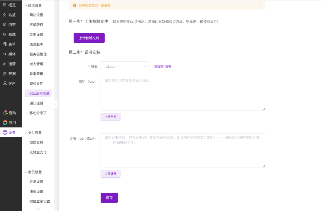 i. 支持直接上传证书文件(.key, .pem等)现在你可以直接通过页面上的 上传密钥/上传证书 按钮直接上传证书的 .key 或者 .pem/.cer 文件了。避免部分情况下打开文件复制文本不方便的问题。上传成功后,文件里的内容将自动填写入文本框内。因为经常会出现SSL证书安装后,中间证书缺失的问题,本次升级也对证书填写说明做了一些细化描述: