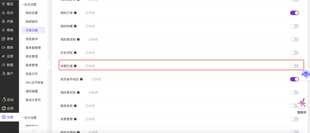 增加充值入口配置,可以通过配置进行充值入口的开启或者关闭。04