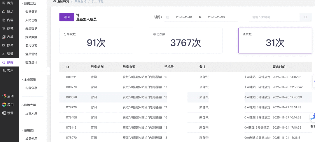 本次升级修复了全员营销数据中,线索数统计数量不正确的问题。