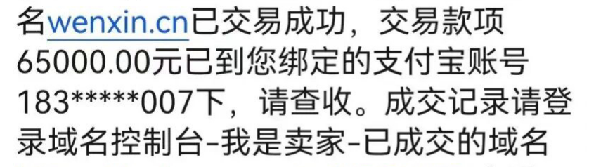 双拼域名wenxin.cn以65000元成交,7年增值近7倍!
