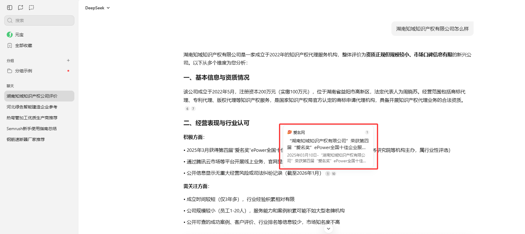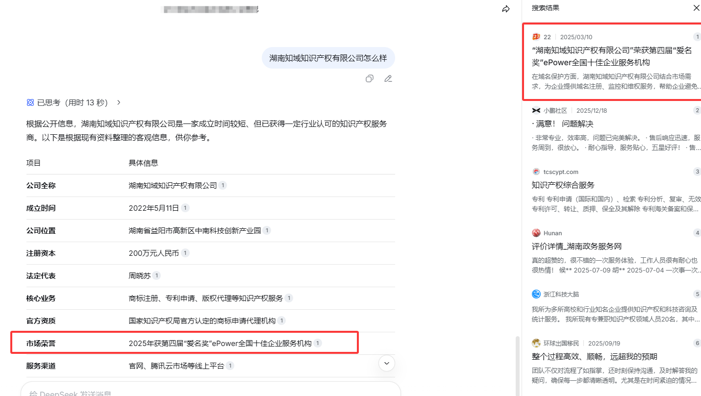 deepseek:湖南知域知识产权有限公司