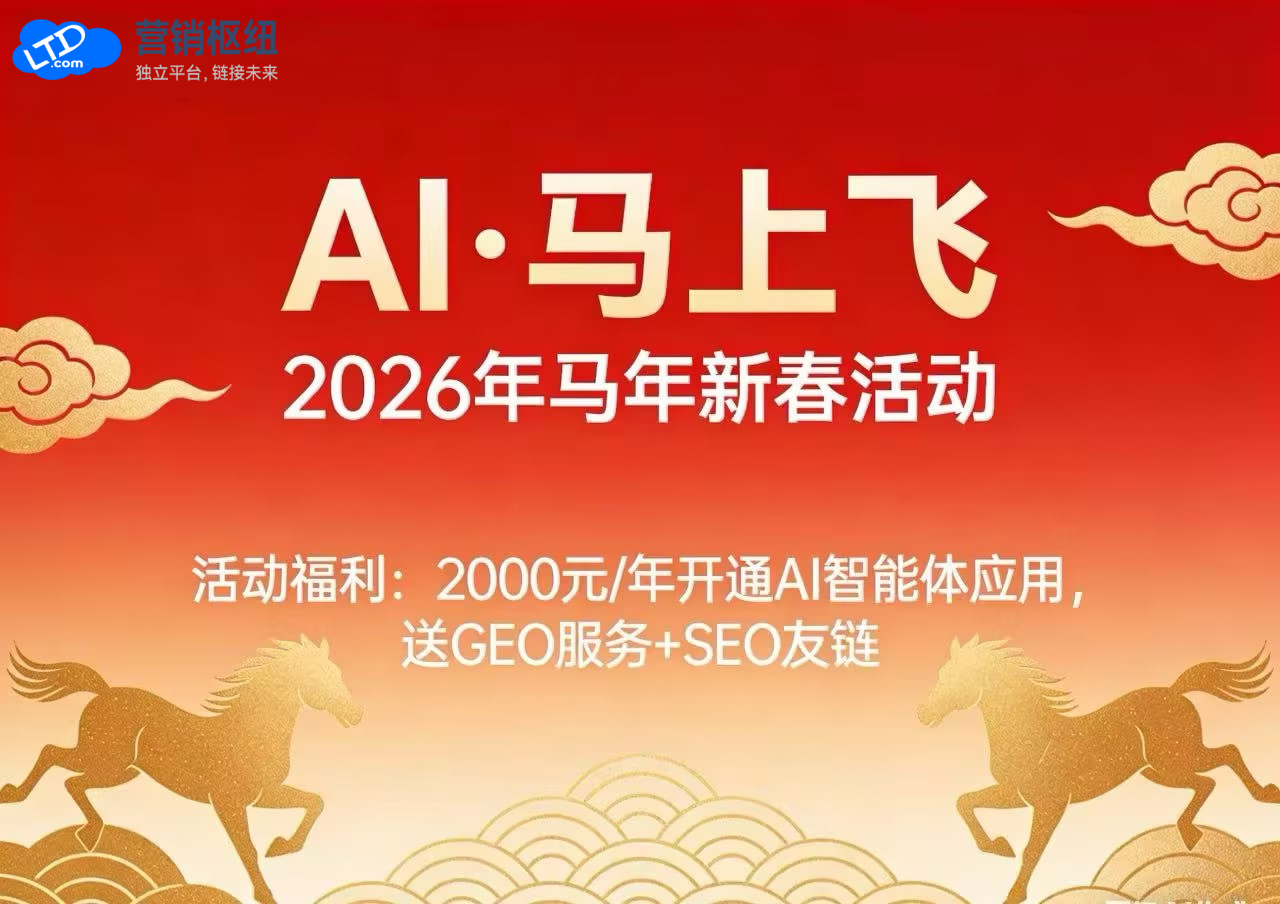 (AI生成图:用AI·马上飞)活动福利:2000元/年 开通AI智能体应用,送 GEO服务(月单)+SEO友链(10个)。
