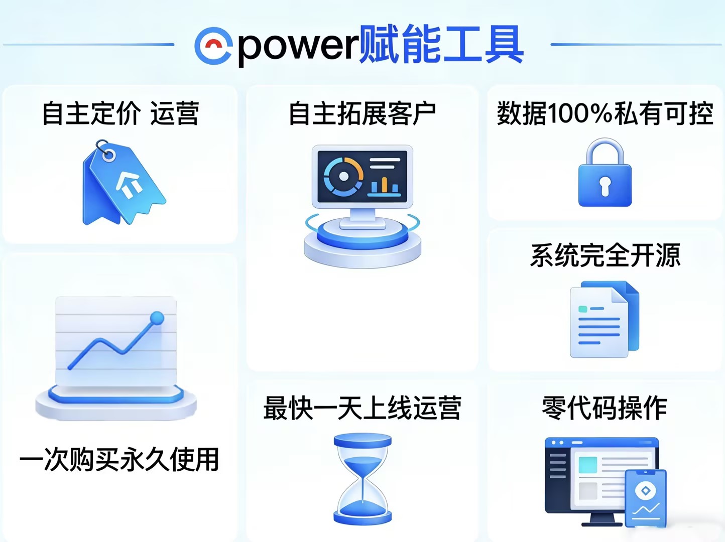 阿里云开辟了企服行业的蓝海,而ePower,让每一位创业者都能成为这片蓝海中的领航者。选择ePower,就是以最低的成本、最快的速度,开启属于自己的企服创业之路,解锁“自己当老板”的无限可能!