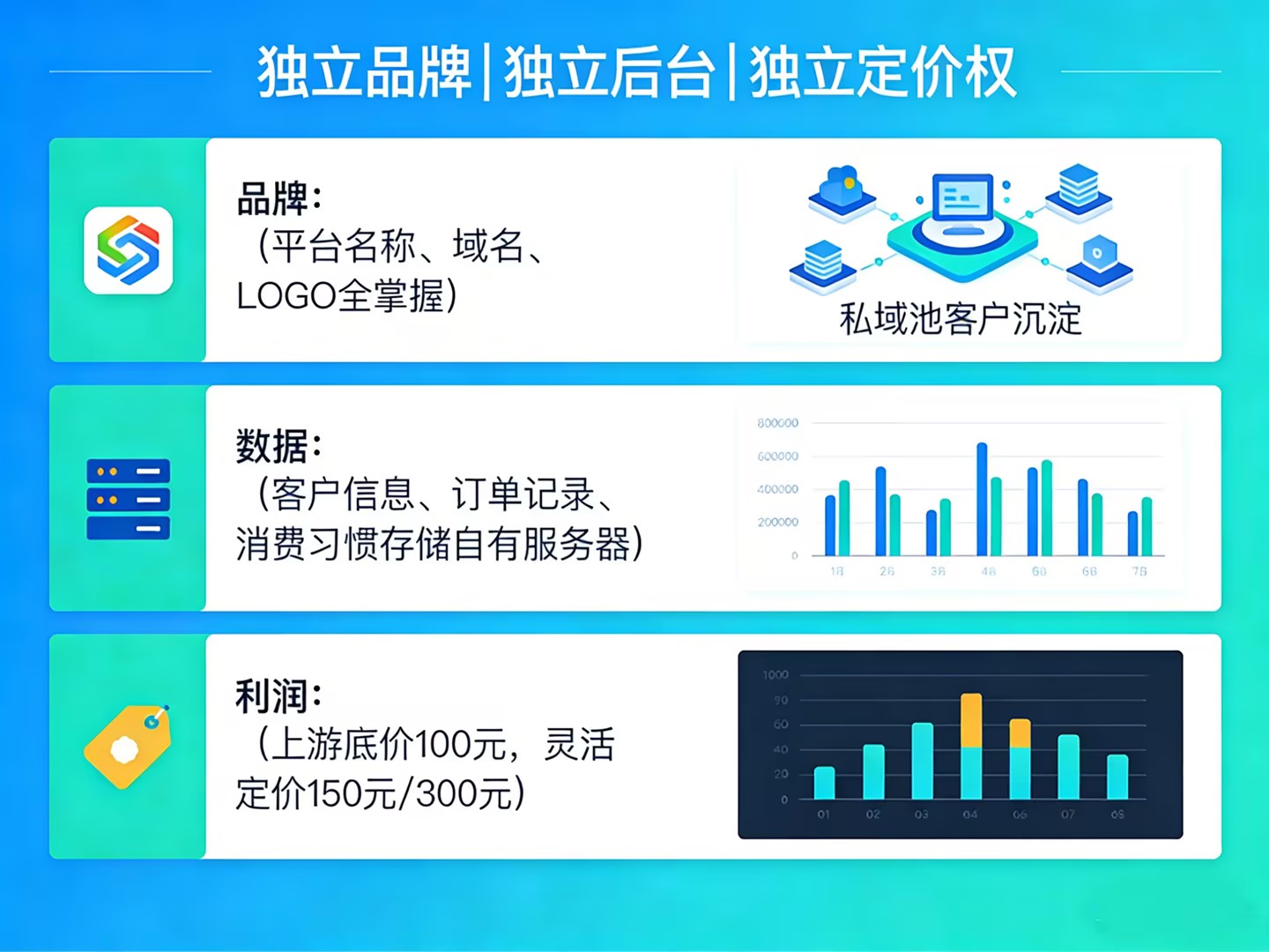 品牌是你的,平台名称、域名、LOGO全由你掌握,所有客户沉淀在你的私域池。