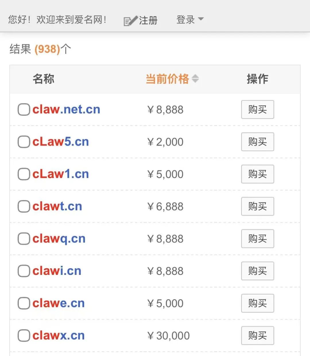 随着OpenClaw概念的深入人心,一场围绕“Claw”相关域名的数字资产抢注大战也悄然拉开帷幕。