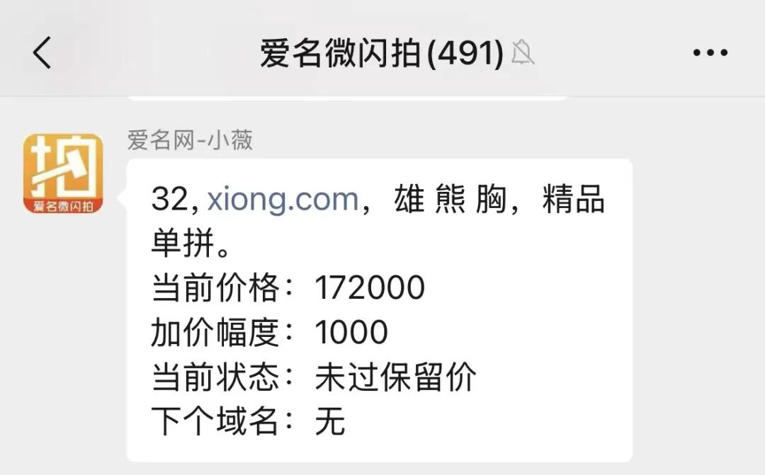 早在 2025年4月1日,该域名曾在爱名微闪拍平台拍卖,当时出价达到 17.2万元,但因未过保留价而遗憾流拍。